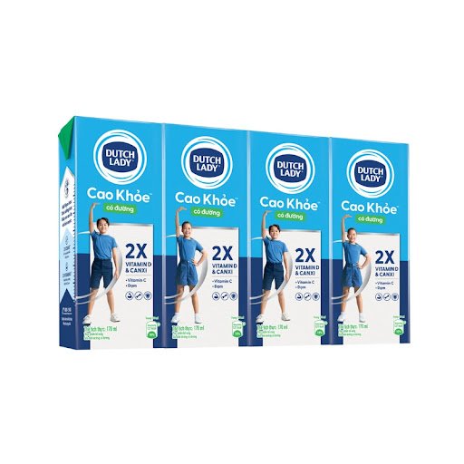 Sữa tiệt trùng có đường Dutch Lady Cao khoẻ 4x170ml