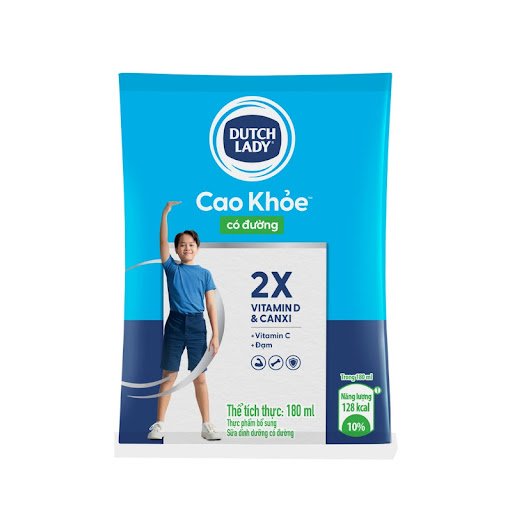 Sữa tiệt trùng Dutch Lady cao khoẻ có đường bịch 180ml