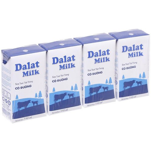 Sữa tươi tiệt trùng Dalat milk có đường 4x110ml